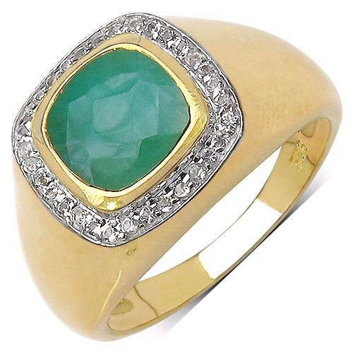Sakota Emerald Checker Board Cushion 8.00mm - 1Pc + White Topaz Round 1.00mm - 32Pcs ( White Pan Rhodium )