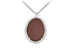 An oval shape chocolate chalcedony with cabochon-cut is securely held in a luscious .925 sterling silver rhodium in prong setting & is surrounded by small silver beads along with four round white CZs sparkling in between silver beads. This gorgeous chalcedony pendant has a total gem weight (TGW) of 15.08 carats. It also available matching ring model no. LRBK70244AGCZCCH and Earrings model no. ERBK70384AGCZCCH.