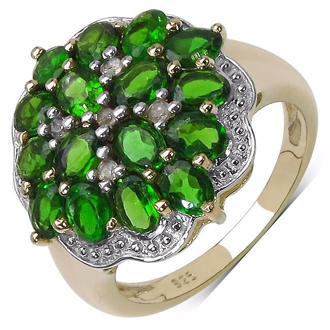 Chrome-Diopside Oval 4x3mm - 16Pcs + White Topaz Round 1.50mm - 5Pcs ( White Pan Rhodium )