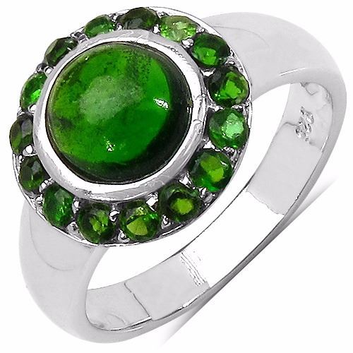 Chrome-Diopside Cabochon Round 7.00mm - 1Pc + Chrome-Diopside Round 2.00mm - 15Pcs
