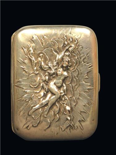 Sterling Silver Cigarette Case, high relief, monogram on back MFA. Excellent condition. 2 1/2 X 3 1/4 inches.