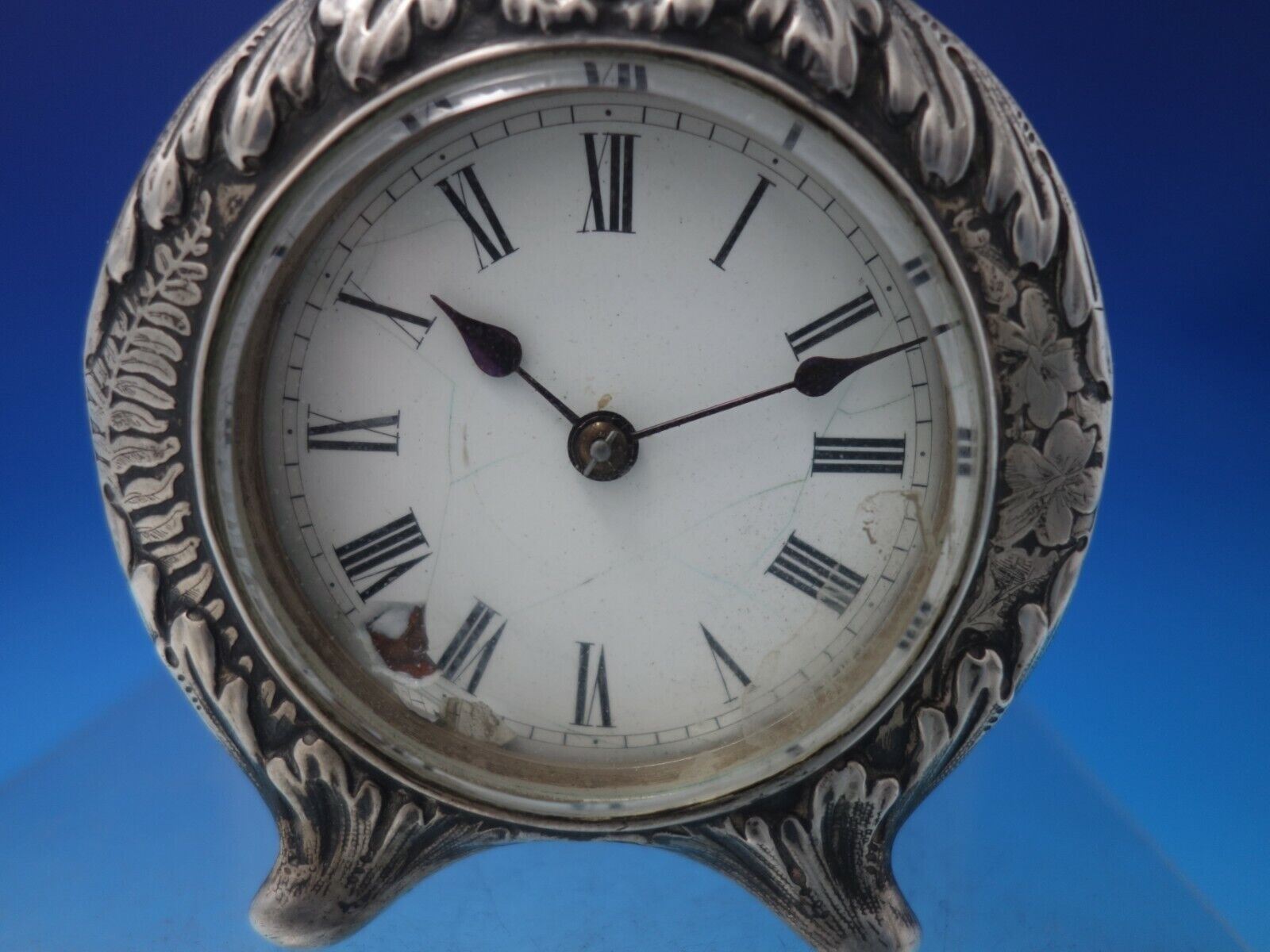 Beautiful Lap Over Edge Acid Etched by Tiffany & Co. sterling silver clock with clock by V.A.P. Brevete. This piece features a lovely flower and leaf design. This piece measures 3 1/2" x 2*5" and it is not known if functional. It is not monogrammed and is in good vintage condition being sold As-Is. Wonderful piece!