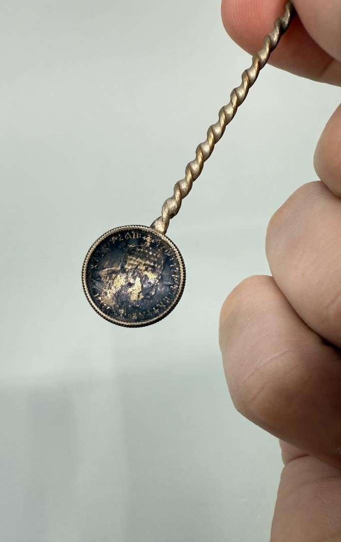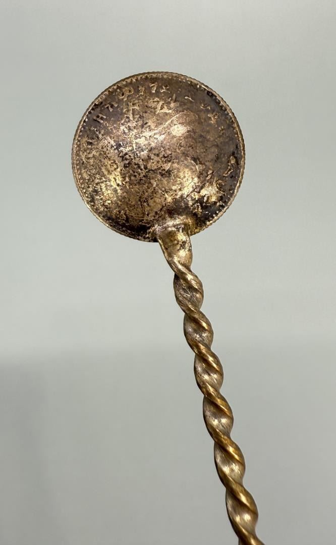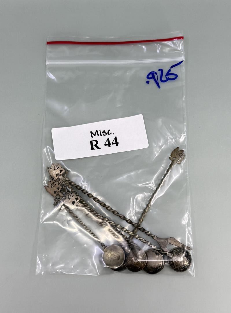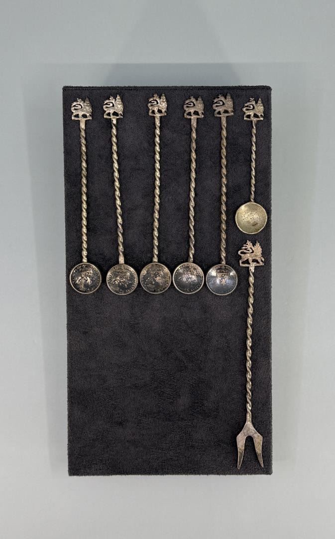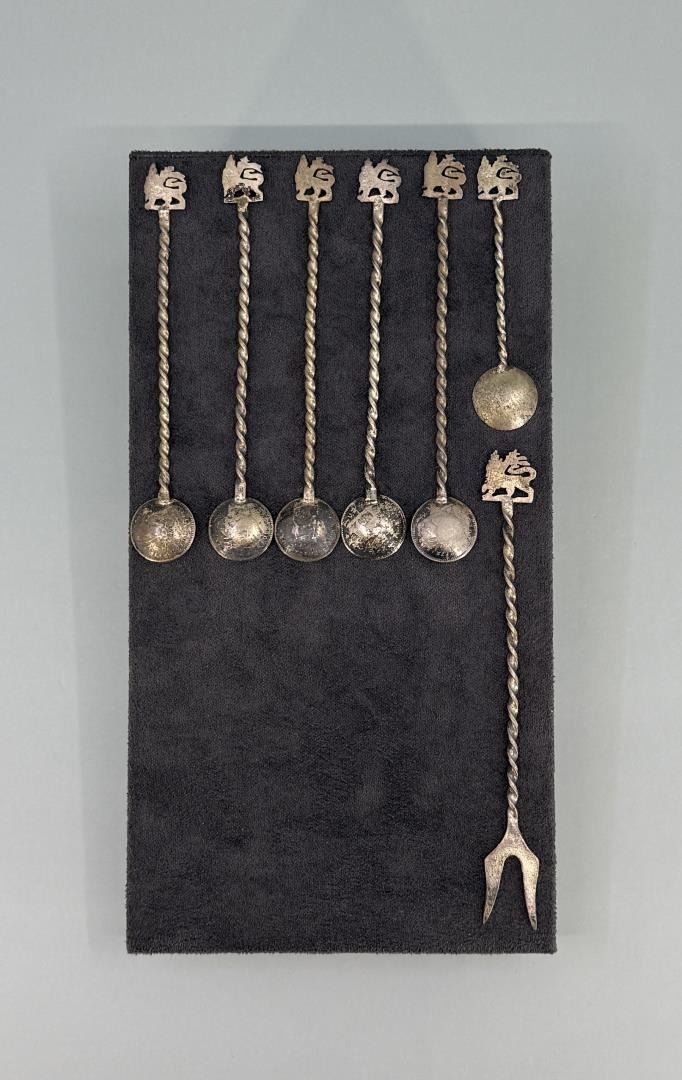 With olive / toasting fork as well. Spoons are 3 3/4" long, fork is 4 1/4" long. 26.64 grams.