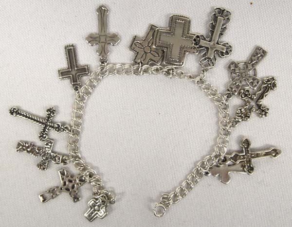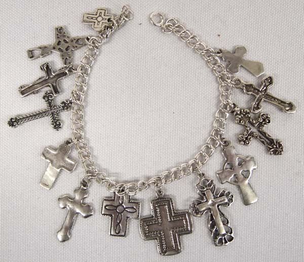 Sterling Silver Cross Charm Bracelet, all sterling silver measures 7'' end to end, largest cross measures 1''L x .75''W, 23.4g in total wt.