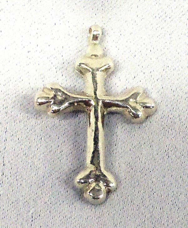 Sterling Silver Cross, Signed. Sweet little sterling cross, trefoil design with attached bale. It measures 1 1/2'' x 1/2'' wide. Stamped ''Sterling'' hallmark ''7''.