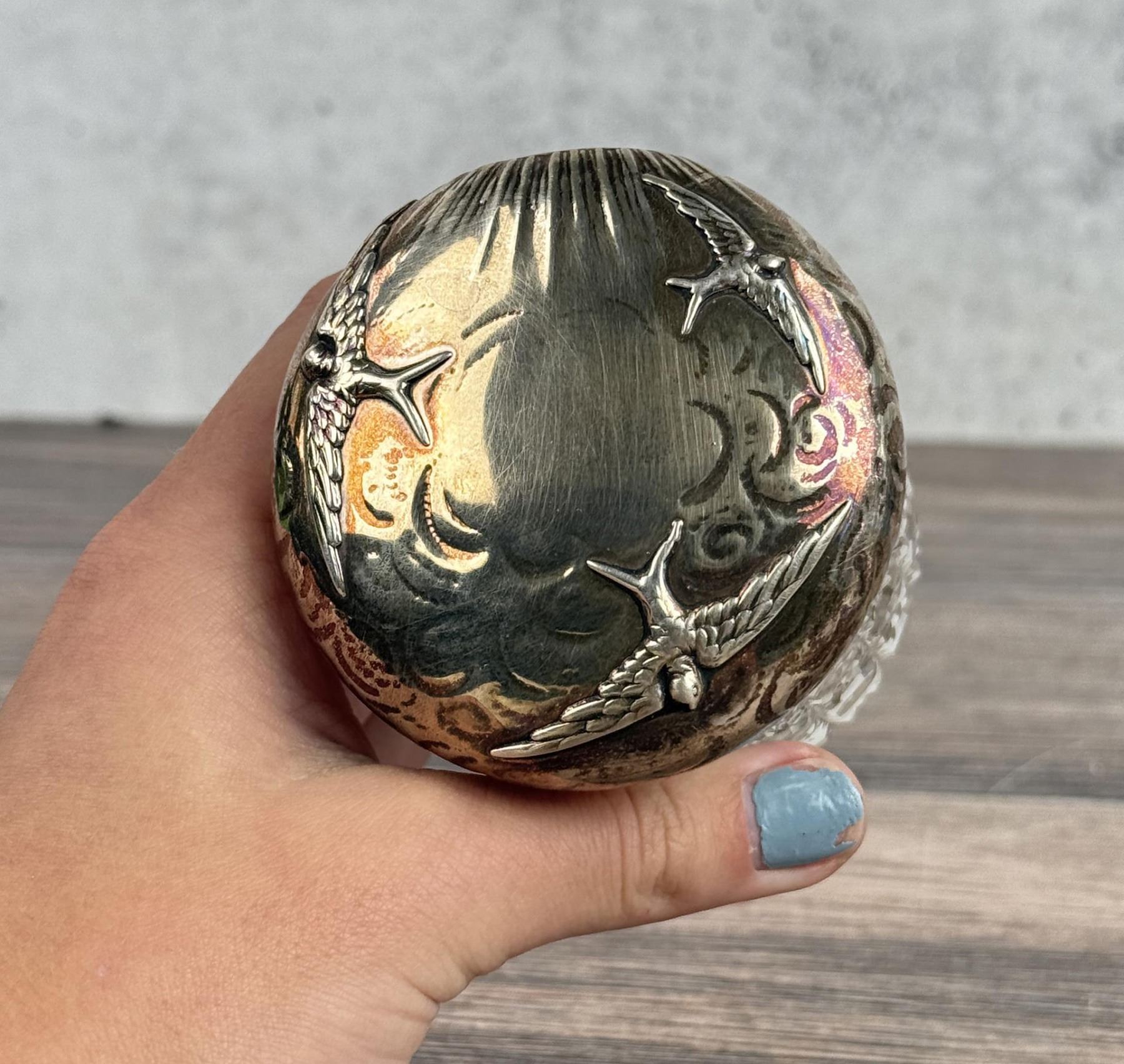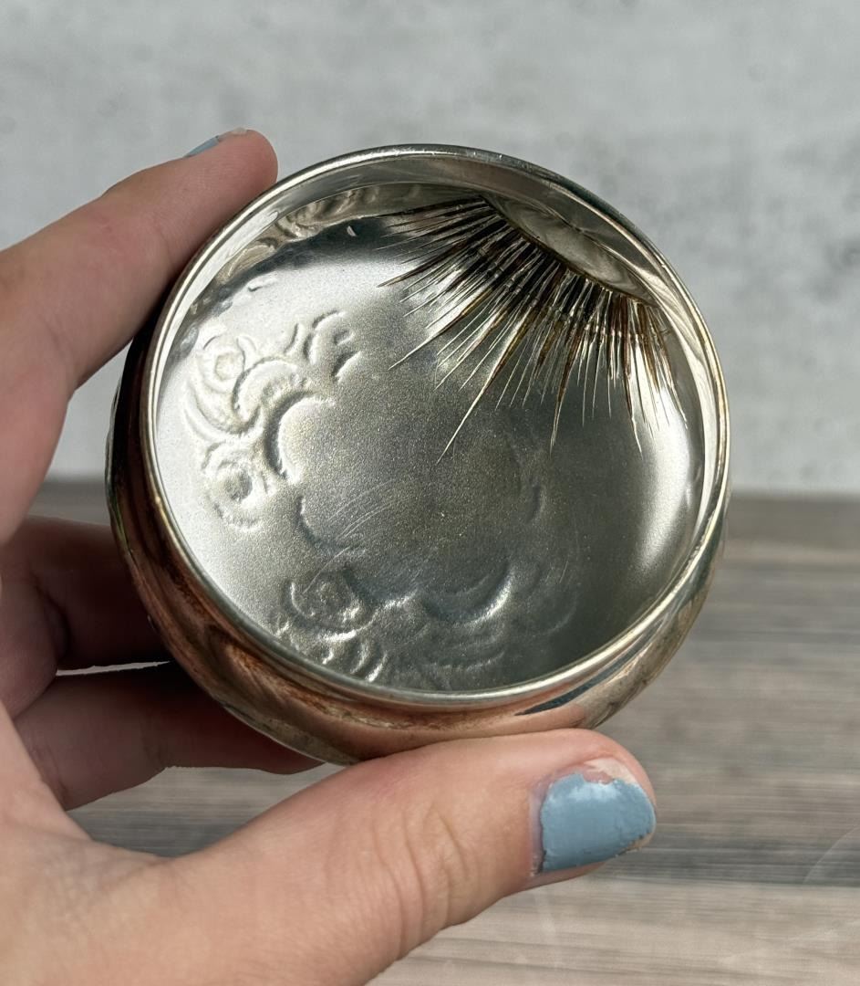 Lid Weighs 49.62 grams. Jar (with lid) stands 3 1/2" tall and measures 2 7/8" across.