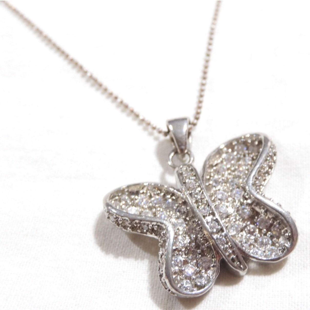 Sterling Silver Cubic Zirconia Accented Butterfly Pendant on 19 1/4" Beaded Chain.