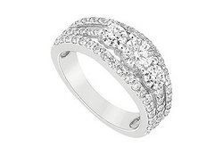 This engagement ring displays three rows of round white CZs. The middle row has three bigger brilliant-cut CZs in its center. Made in .925 sterling silver rhodium this engagement ring has a total weight (TGW) of 2.25 carats.