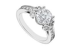 A large round white cubic zirconia with TGW of 3 carats is set in the center and is accented by smaller round white CZs on both sides. This beautiful design engagement ring is made in .925 sterling silver rhodium & has a total gem weight (TGW) of 4.00 carats.