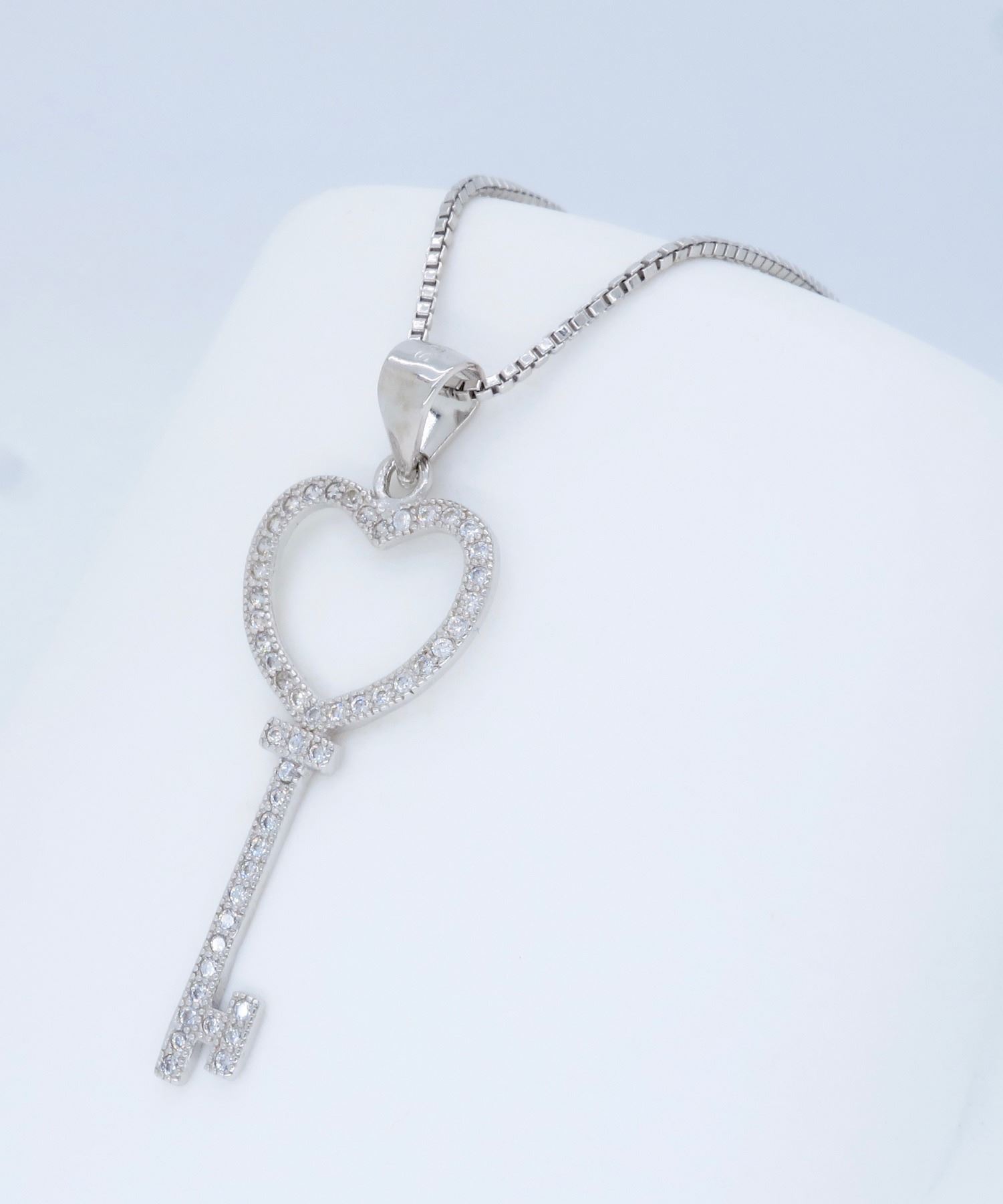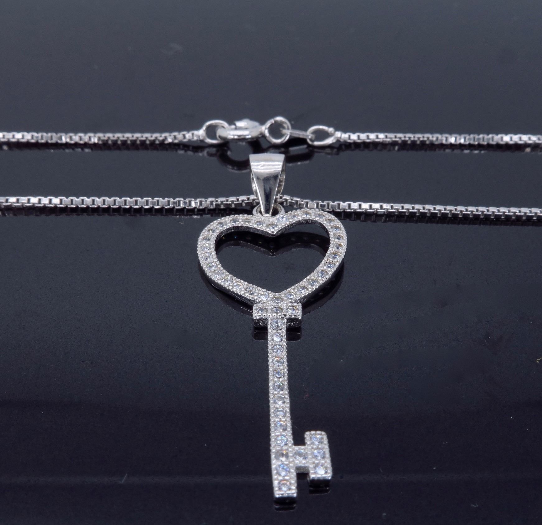 One Sterling Silver Cubic Zirconia Pendant with Chain. Total weight of this pendant with chain is 3.7 grams. Total length of this chain is 18 inches.
