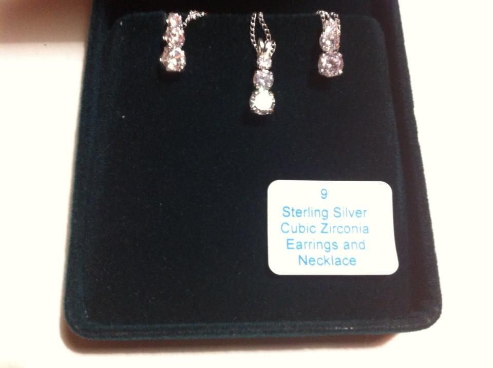 Sterling Silver Cubic Zirconium Pendant with Chain and Matching Earrings