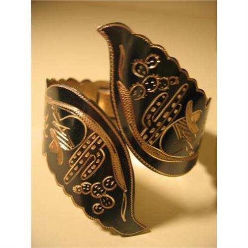 AU31. This is a very big signed Mexican sterling silver enameled carved clamper cuff bracelet. It is approx. 31 grams. The bracelet is approx. 2.5 inches wide top to bottom on the front. The hinge is in excellent condition. There are carvings of cactus, a man resting in a sombrero, a house and a tree. The inside is marked AU7 or AUT then PAVON STERLING SILVER with a maker's mark. The bracelet is approx. 8 inches around when you wrap a tape measure around the outside of it. This should fit the average adult female wrist, and it may be a bit generous in size. If you wrap a tape measure around your wrist and stop at 8 inches you will have an idea of how this bracelet might fit you. The piece is absolutely gorgeous and very unusual. Ships from the US to Europe, Australia, Japan, Canada and the USA. Paypal and money orders accepted.