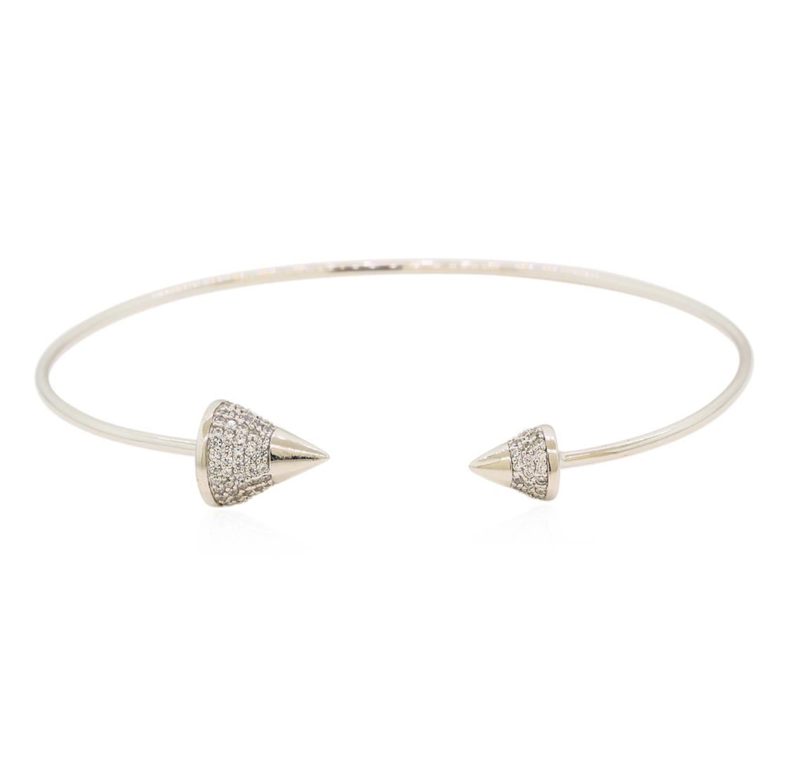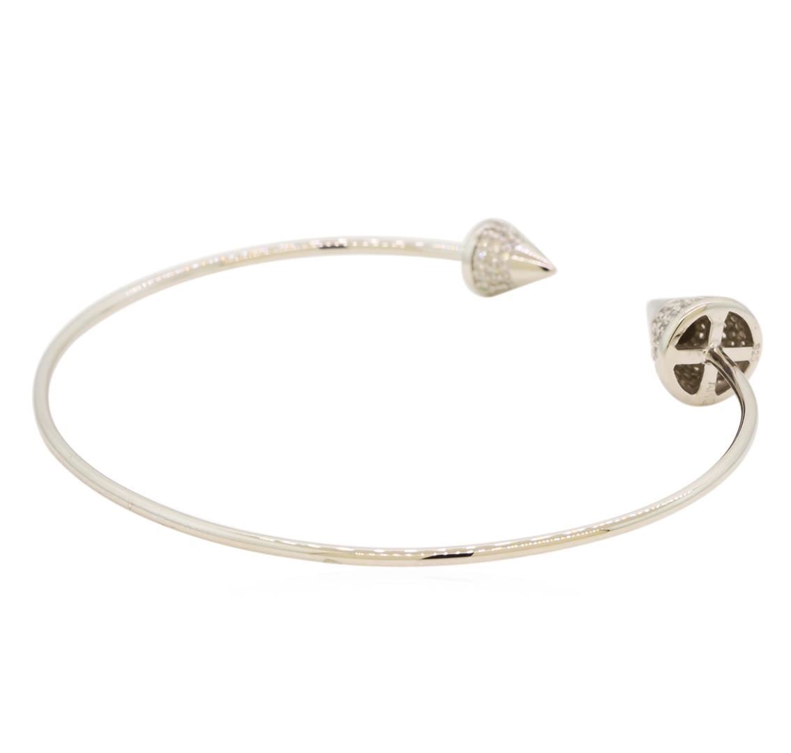 One of a kind high fashion sterling silver Cuff Bracelet weighing 5.3 grams. Containing: Cubic Zirconia. This sterling silver promises a lasting shine.