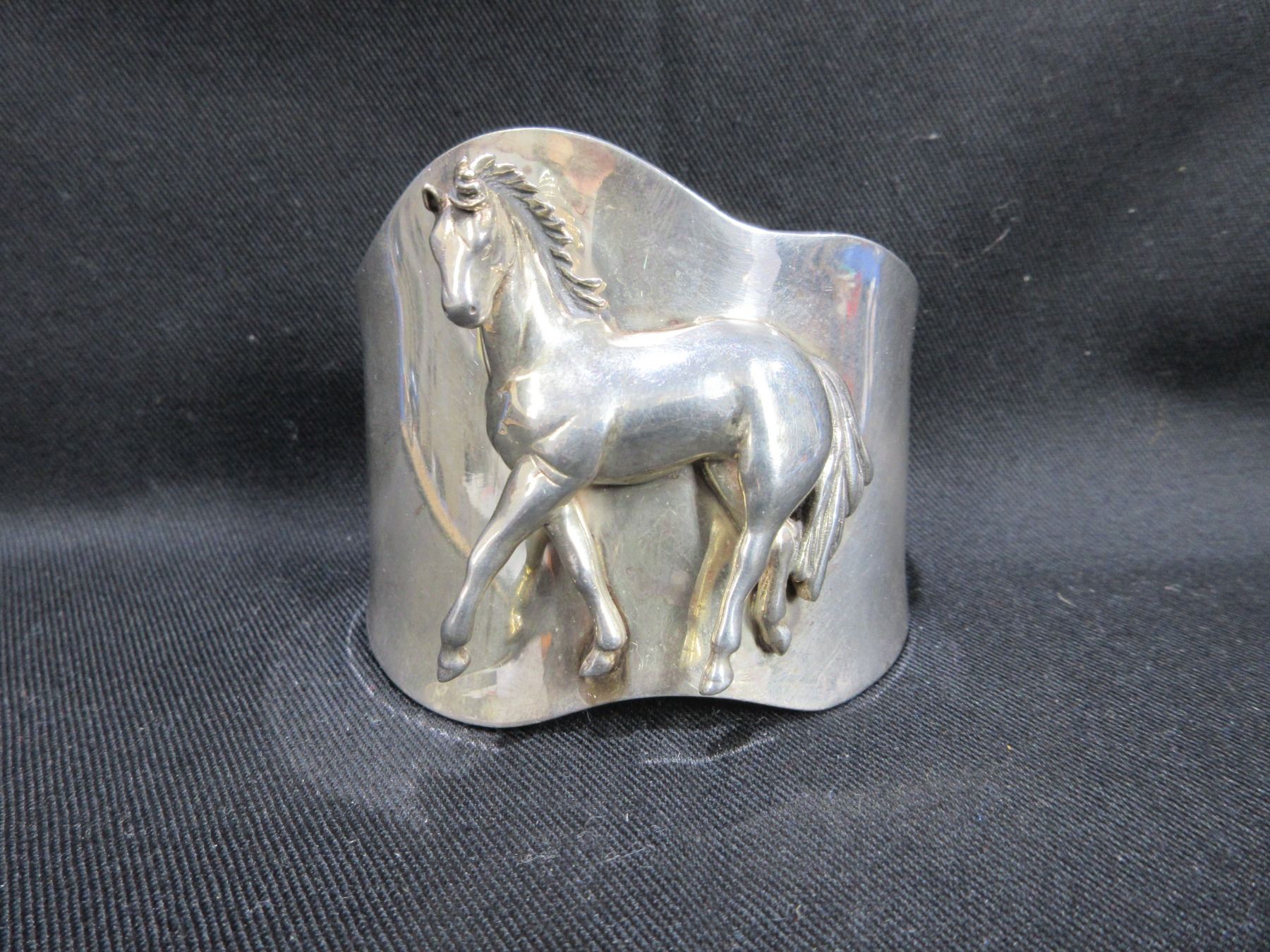 Sterling Silver Custom Made Bracelet with Horse Figure - Total weight 74.9 grams. Estimated Value $995.00