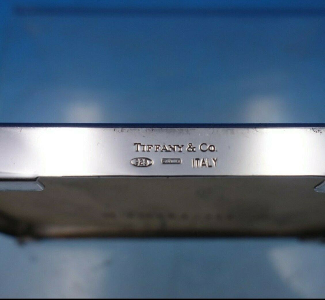 Wonderful Tiffany and Co sterling silver desk calendar frame made in Italy. This piece measures 3 3/4" x 2 7/8". It is not monogrammed and is in good vintage condition. Outstanding!