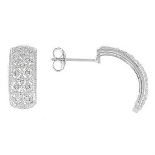 This earring has great filigree design. The earrings are 5/16 in width and 11/16 in the drop. The .25ct diamonds are set in .925 sterling silver. These earrings have a tension post in the back.