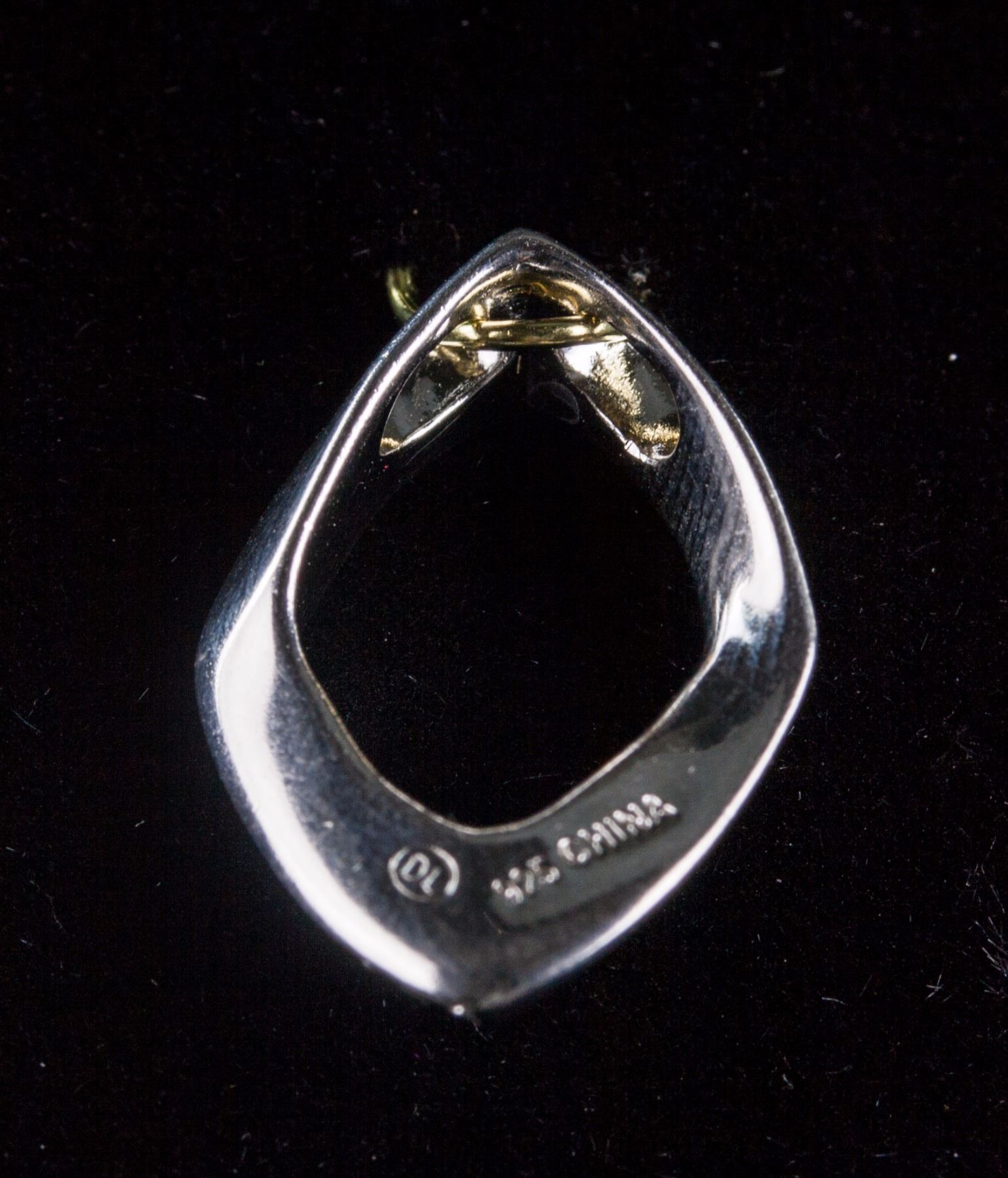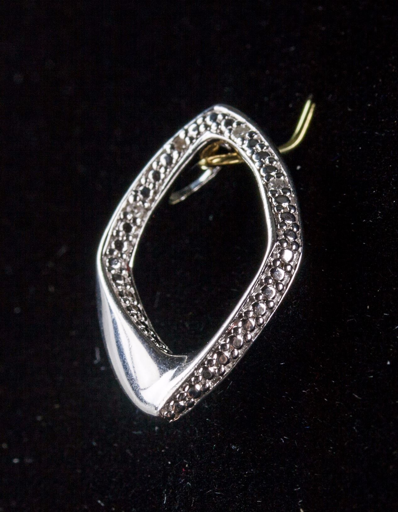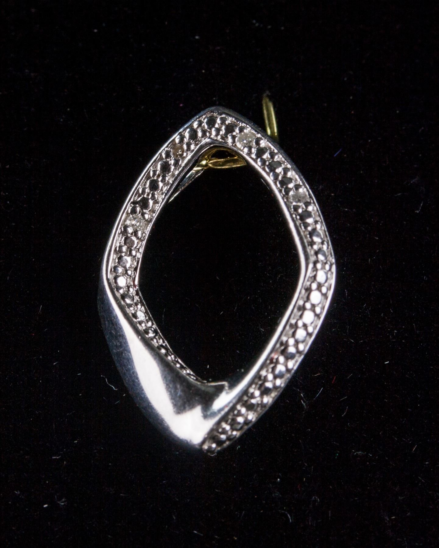 Sterling silver pendant; set with diamonds; retail value $150; H: 2 cm, W: 1.4 cm, 2.24 grams