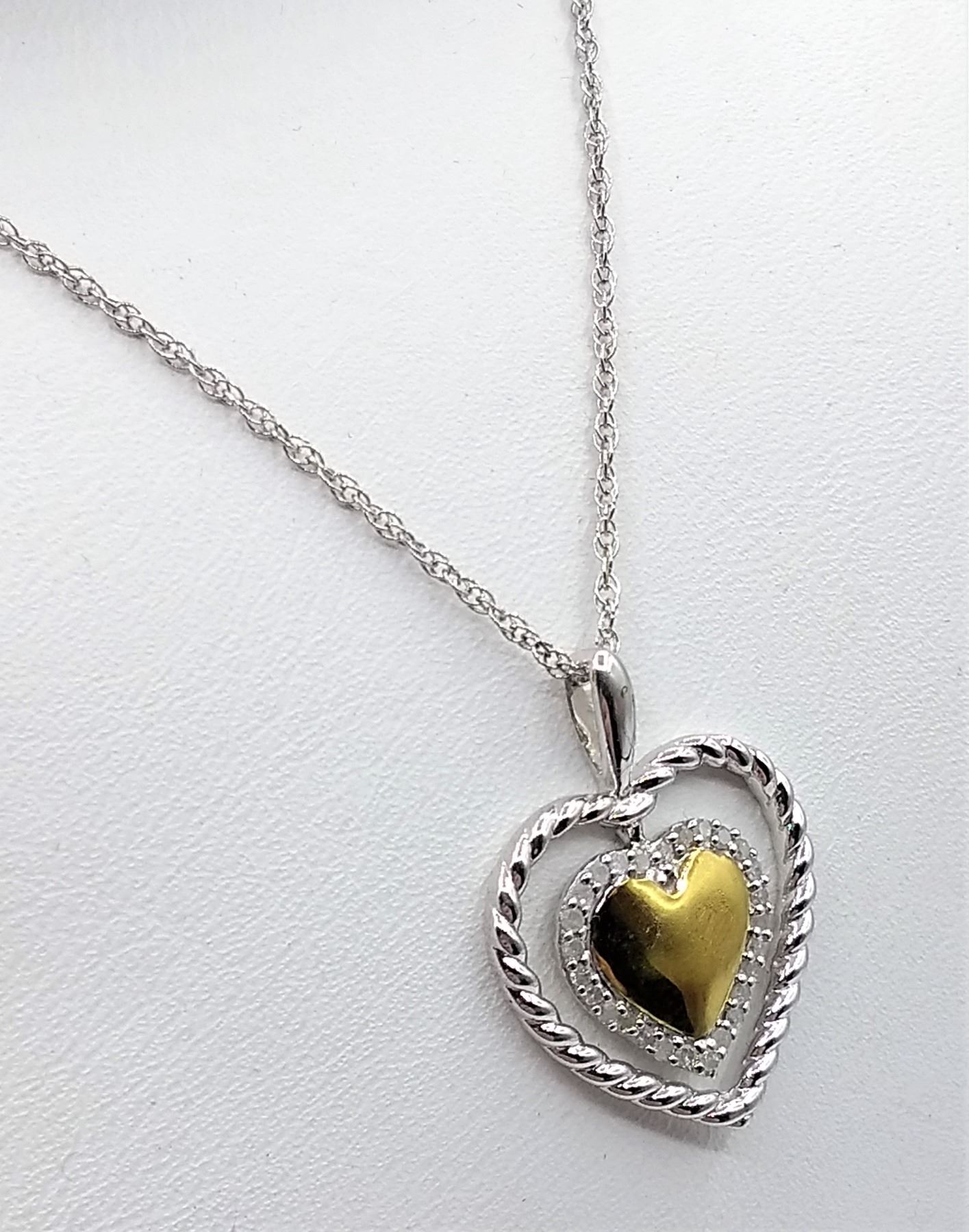 Sterling Silver Diamond heart Pendant with 18" chain, 27 Diamonds (0.1cts), With appraisal of $1035.00...New