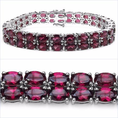 Sterling Silver Double Row Rhodolite Bracelet