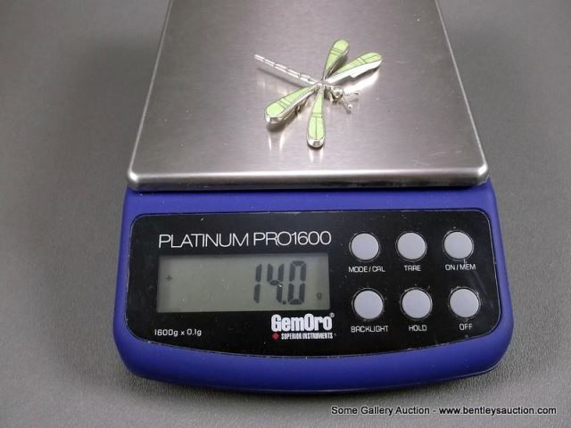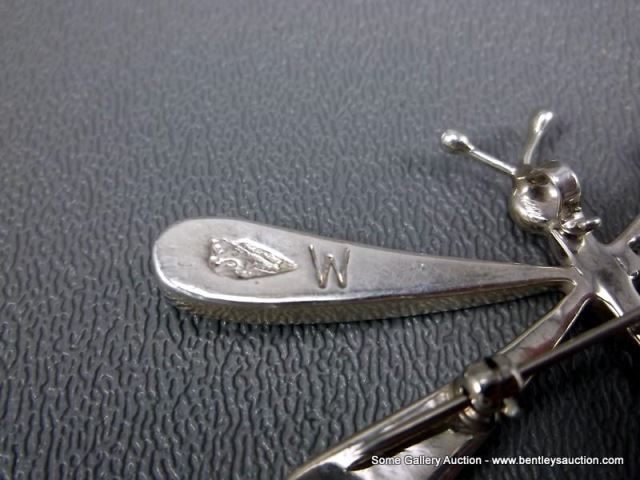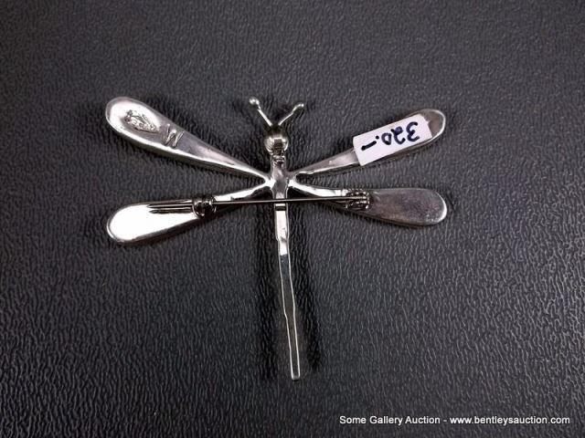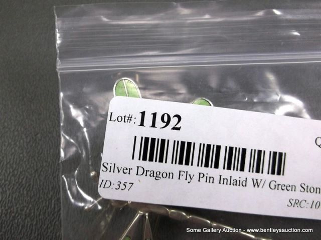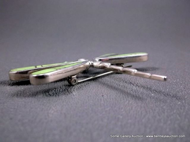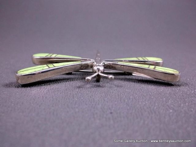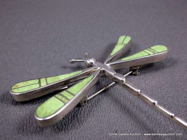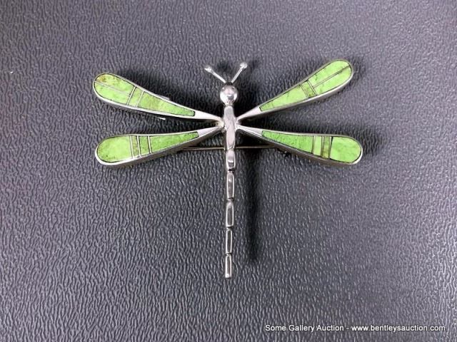 Sterling Silver Dragon Fly Pin Inlaid w/ Green Stone-Marked W Weight: 14 Grams Retail: $320.00