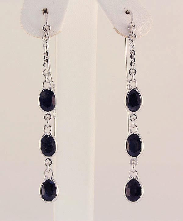 Sterling Silver Drop Dangle 15.80ctw Sapphire Earring **|**|** 2.30 Inches Long Drop Dangling Earring with 7x5mm Approx Blue Sapphire Gemstone ; MSRP: $200