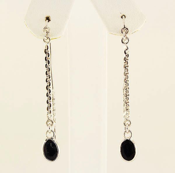 Sterling Silver Drop Dangle 9.05ctw Sapphire Earring **|**|** 1.70 Inches Long Drop Dangling Earring with 7x5mm Approx Blue Sapphire Gemstone ; MSRP: $200