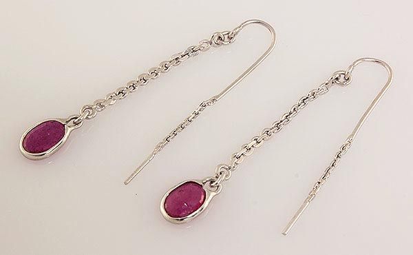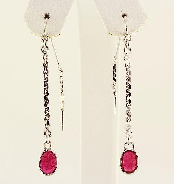 1.85 Inches Long Drop Dangling Earring with 7x5mm Approx Ruby Gemstone
