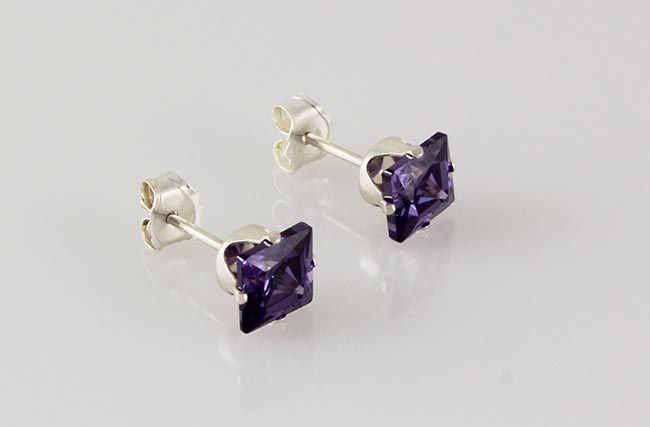 Sterling Silver Earring Prong Set Amethyst Crystal **|**|** Brilliant Princess Cut Amethyst CZ Set in Sterling Silver Prong Earring ; MSRP: $0