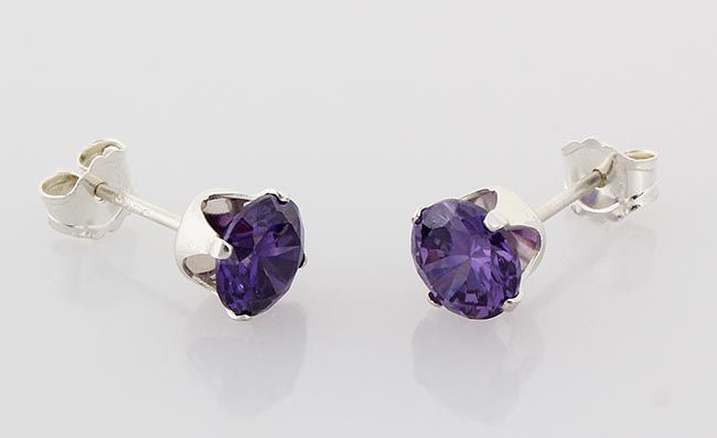 Sterling Silver Earring Prong Set Amethyst Crystal **|**|** Brilliant Round Cut Amethyst CZ Set in Sterling Silver Prong Earring ; MSRP: $0