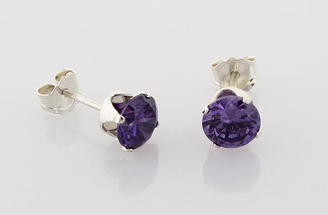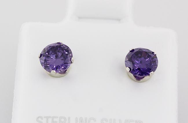 Sterling Silver Earring Prong Set Amethyst Crystal **|**|** Brilliant Round Cut Amethyst CZ Set in Sterling Silver Prong Earring ; MSRP: $0