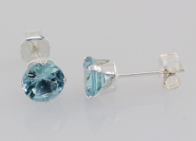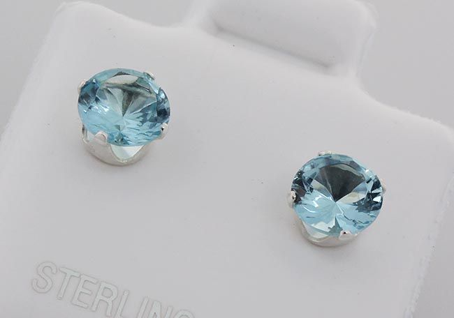 Sterling Silver Earring Prong Set Aquamarine **|**|** Brilliant Round Cut Aquamarine CZ Set in Sterling Silver Prong Earring ; MSRP: $0