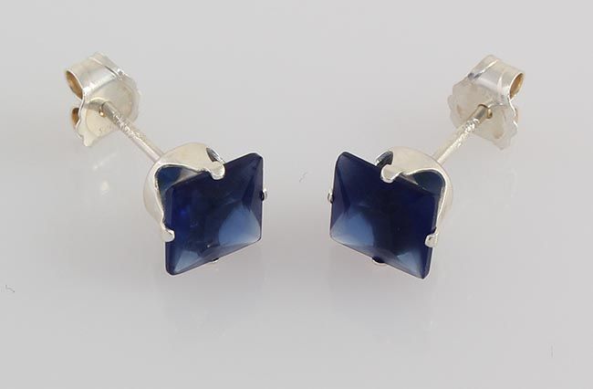 Sterling Silver Earring Prong Set Blue Sapphire **|**|** Brilliant Princess Cut Blue Sapphire CZ Set in Sterling Silver Prong Earring ; MSRP: $0