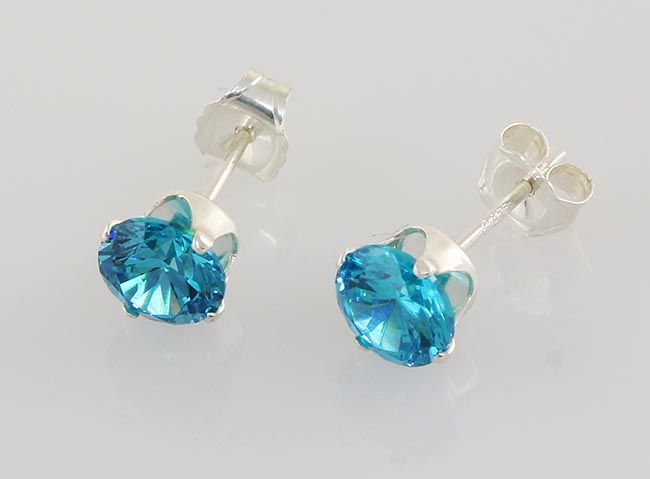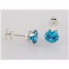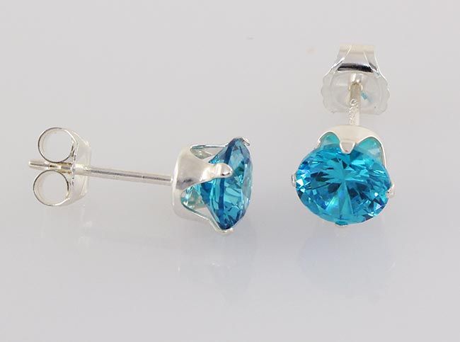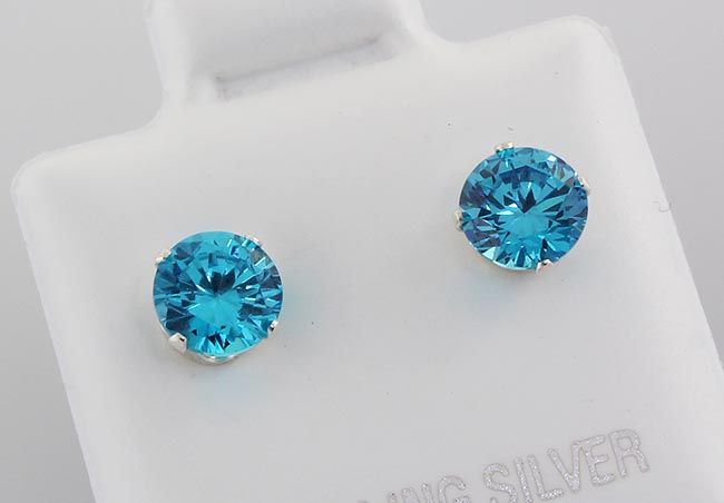 Sterling Silver Earring Prong Set Blue Topaz **|**|** Brilliant Round Cut Blue Topaz CZ Set in Sterling Silver Prong Earring ; MSRP: $0