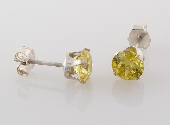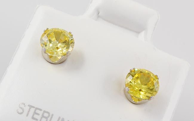 Sterling Silver Earring Prong Set Citrine Crystal **|**|** Brilliant Round Cut Citrine CZ Set in Sterling Silver Prong Earring ; MSRP: $0