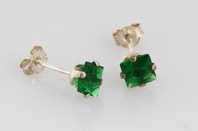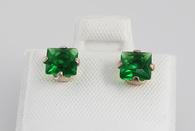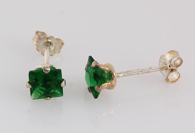 Sterling Silver Earring Prong Set Emerald Green **|**|** Brilliant Princess Cut Emerald Green CZ Set in Sterling Silver Prong Earring ; MSRP: $0