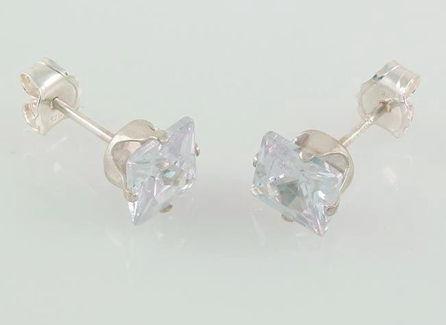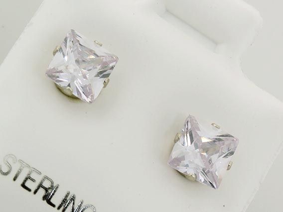 Sterling Silver Earring Prong Set Fire Diamond Crystal **|**|** Brilliant Princess Cut Fire Diamond CZ Set in Sterling Silver Prong Earring ; MSRP: $0