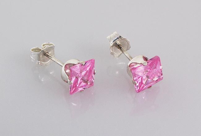 Sterling Silver Earring Prong Set Pink Sapphire **|**|** Brilliant Princess Cut Pink Sapphire CZ Set in Sterling Silver Prong Earring ; MSRP: $0