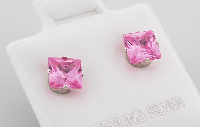Sterling Silver Earring Prong Set Pink Sapphire **|**|** Brilliant Princess Cut Pink Sapphire CZ Set in Sterling Silver Prong Earring ; MSRP: $0
