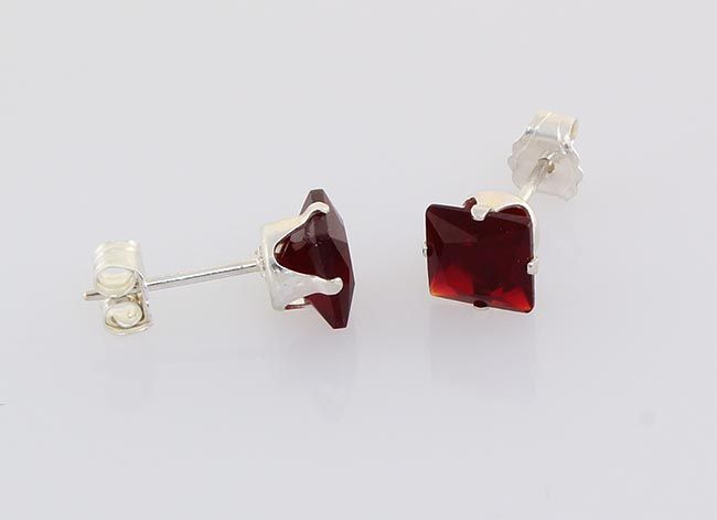 Sterling Silver Earring Prong Set Ruby Red Crystal **|**|** Brilliant Princess Cut Ruby Red CZ Set in Sterling Silver Prong Earring ; MSRP: $0