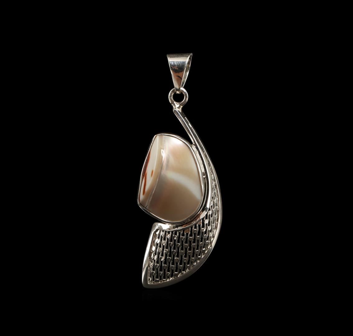 One of a kind high fashion sterling silver Earrings and Pendant Jewelry Suite weighing 15.8 grams. Containing: Natural Mother of Pearl Slice, Natural Button Pearls. This sterling silver promises a lasting shine.