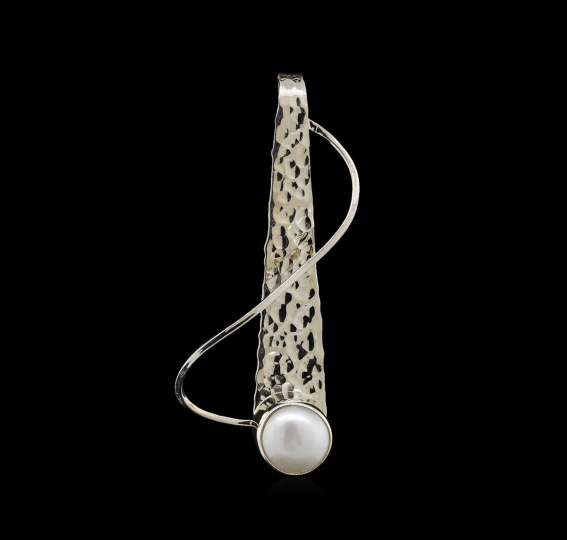 One of a kind high fashion sterling silver Earrings and Pendant Jewelry Suite weighing 15.6 grams. Containing: Natural Button Pearl. This sterling silver promises a lasting shine.
