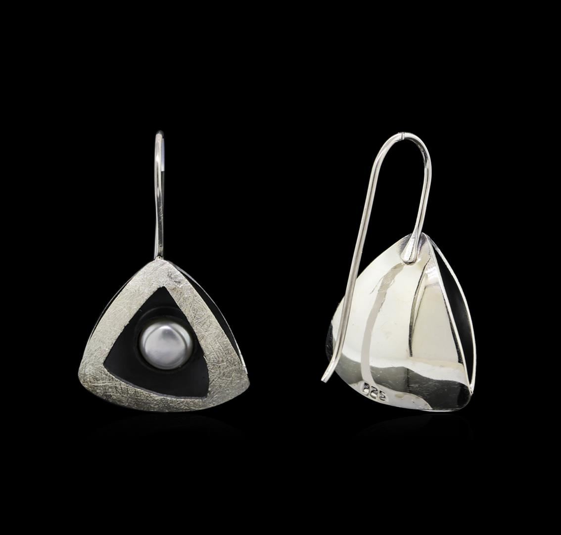 One of a kind high fashion sterling silver Earrings and Pendant Jewelry Suite weighing 21.8 grams. Containing: Natural Button Pearl. This sterling silver promises a lasting shine.