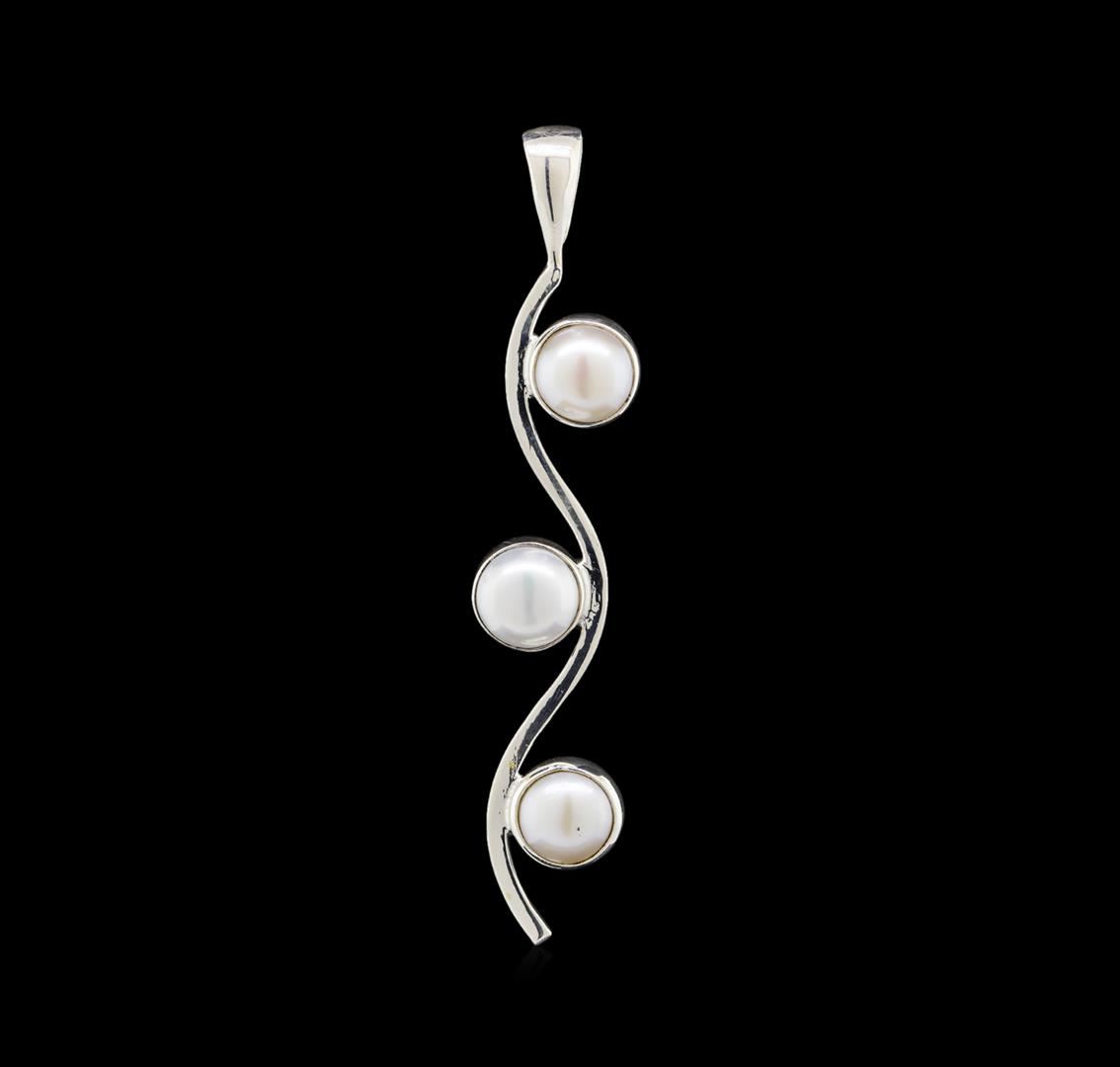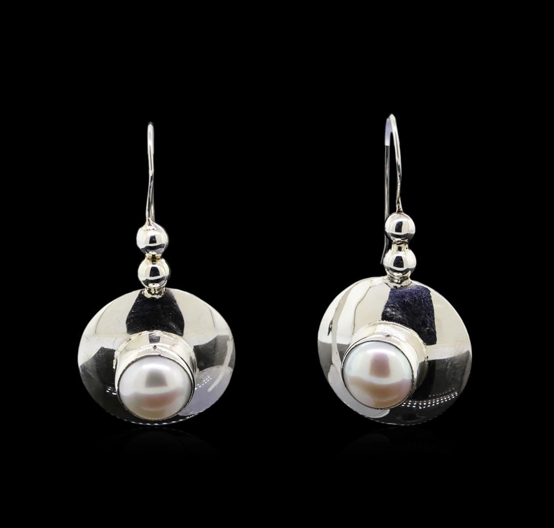 One of a kind high fashion sterling silver Earrings and Pendant Jewelry Suite weighing 22.7 grams. Containing: Natural Button Pearl. This sterling silver promises a lasting shine.