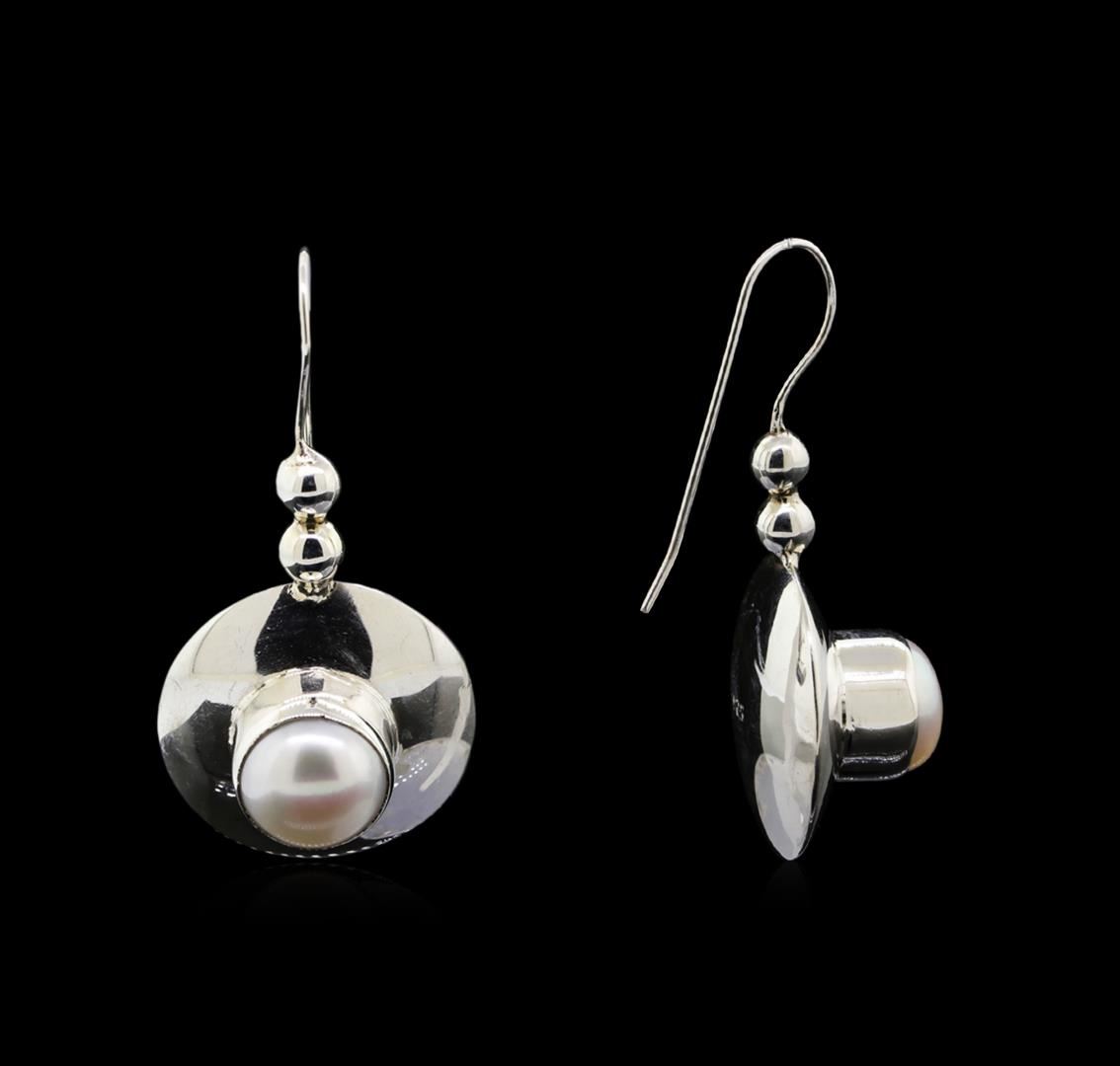 One of a kind high fashion sterling silver Earrings and Pendant Jewelry Suite weighing 22.7 grams. Containing: Natural Button Pearl. This sterling silver promises a lasting shine.