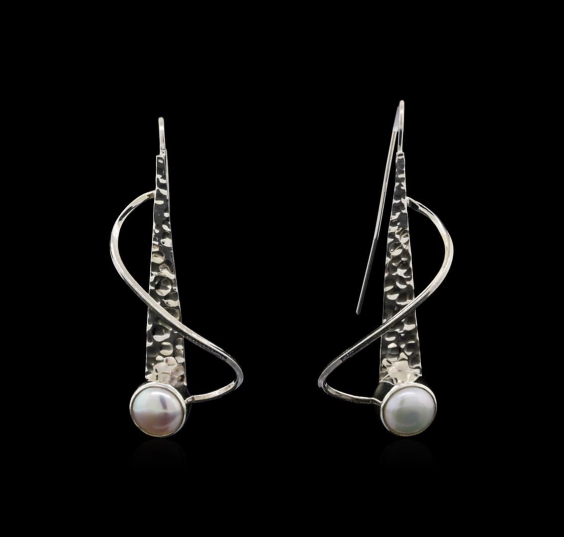 One of a kind high fashion sterling silver Earrings and Pendant Jewelry Suite weighing 15.6 grams. Containing: Natural Button Pearl. This sterling silver promises a lasting shine.