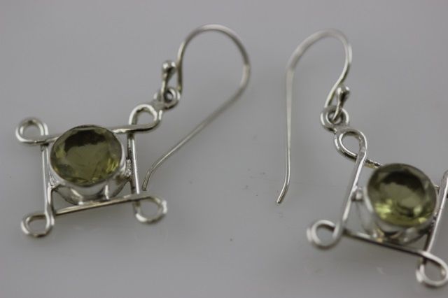 Sterling Silver Earrings with 9mm round faceted Citrine gemstones. 5 grams total weight.