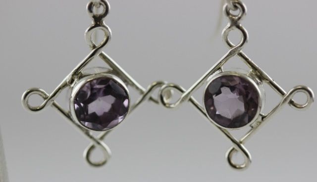 Sterling Silver Earrings with 9mm round faceted Purple Amethyst gemstones. 4.9 grams total weight.
