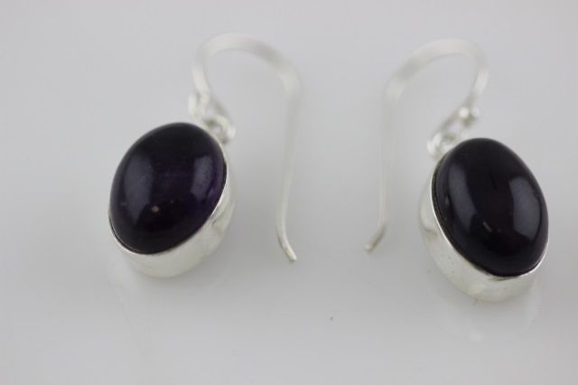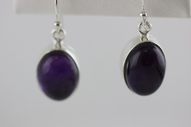 Sterling Silver Earrings with 13mm oval cabochon Purple Amethyst gemstones. 5.8 grams total weight.