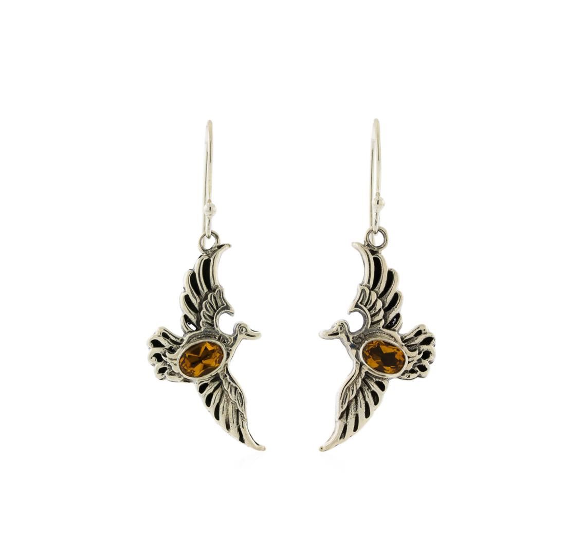 One of a kind high fashion sterling silver Earrings weighing 9.1 grams. Containing: Citrine. This sterling silver promises a lasting shine.