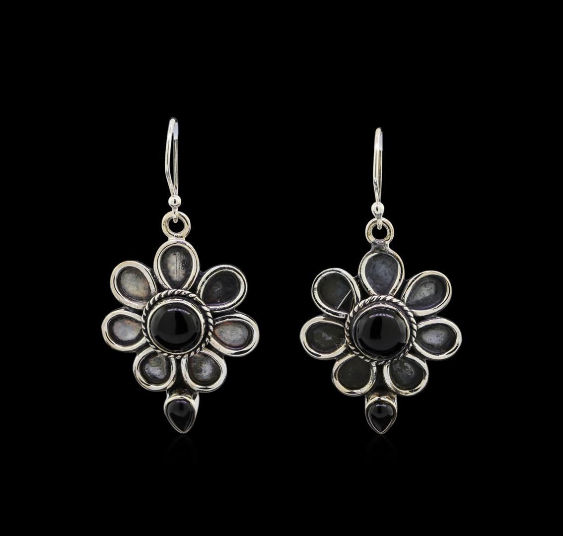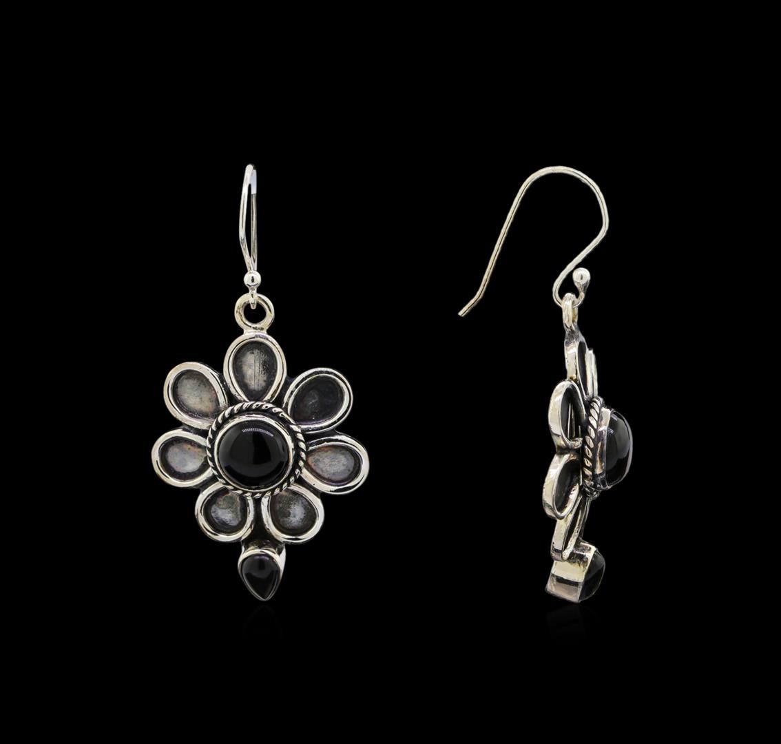 One of a kind high fashion sterling silver Earrings weighing 10.1 grams. Containing: Onyx. This sterling silver promises a lasting shine.